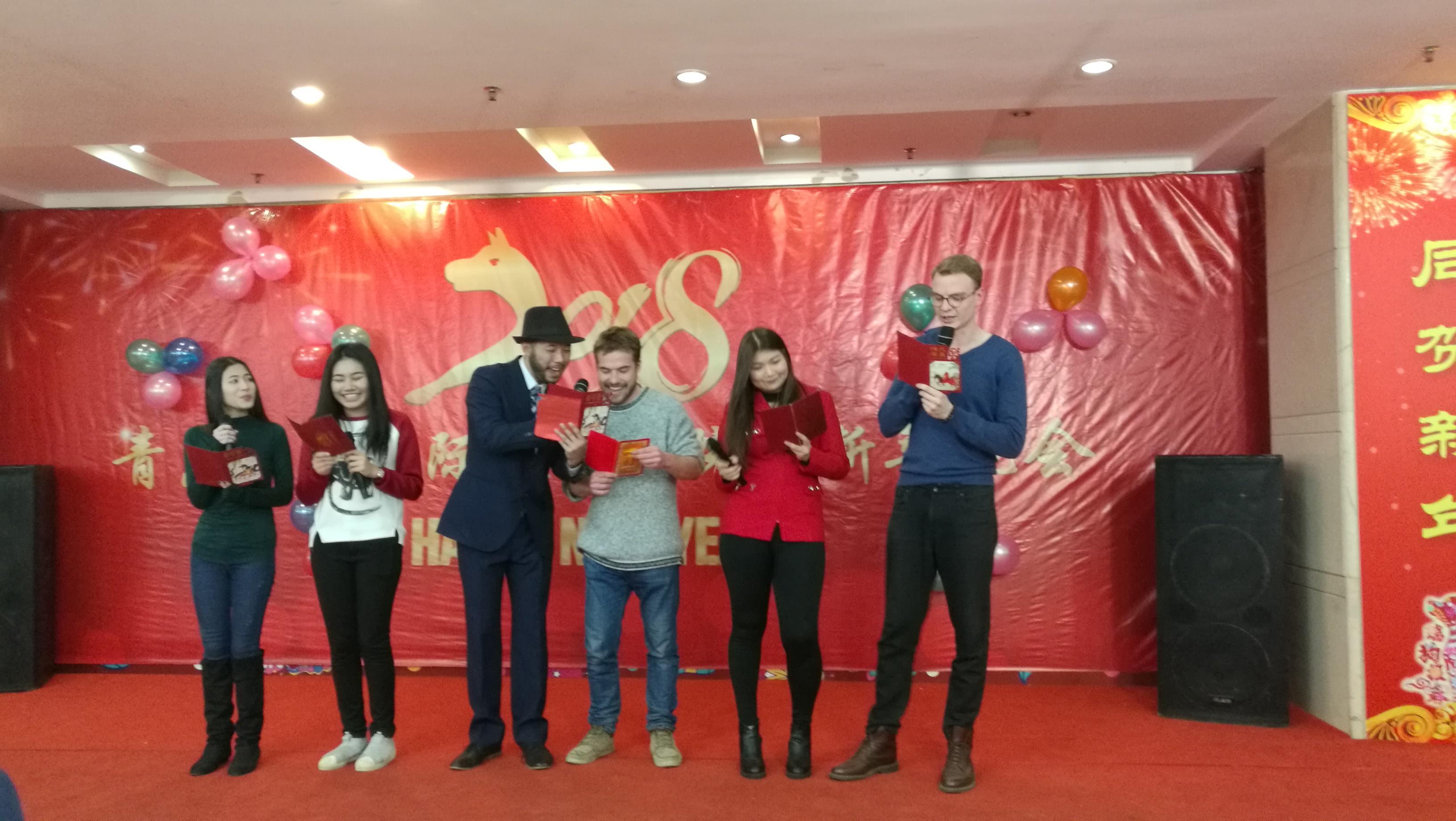 2017年12月29日晚五时,青岛大学国际学生迎新年晚会在青岛大学国际学术交流中心百家乐餐厅隆重举行,300余名中外师生欢聚一堂,共同迎接新年的到来。