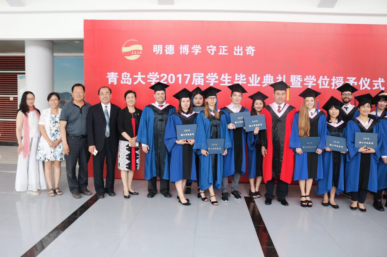 毕业典礼上,校学位评定委员会副主席、校党委常委、副校长于永明宣读了《青岛大学第七届学位评定委员会第四次全体会议决议》。今年,我院共有20多名中国学生获得硕士学位,来华留学的外国毕业生48人分别获得学士和硕士学位。我院汉语国际教育硕士、来自俄罗斯的留学生春梅作为留学生代表在全校毕业仪式上发言。