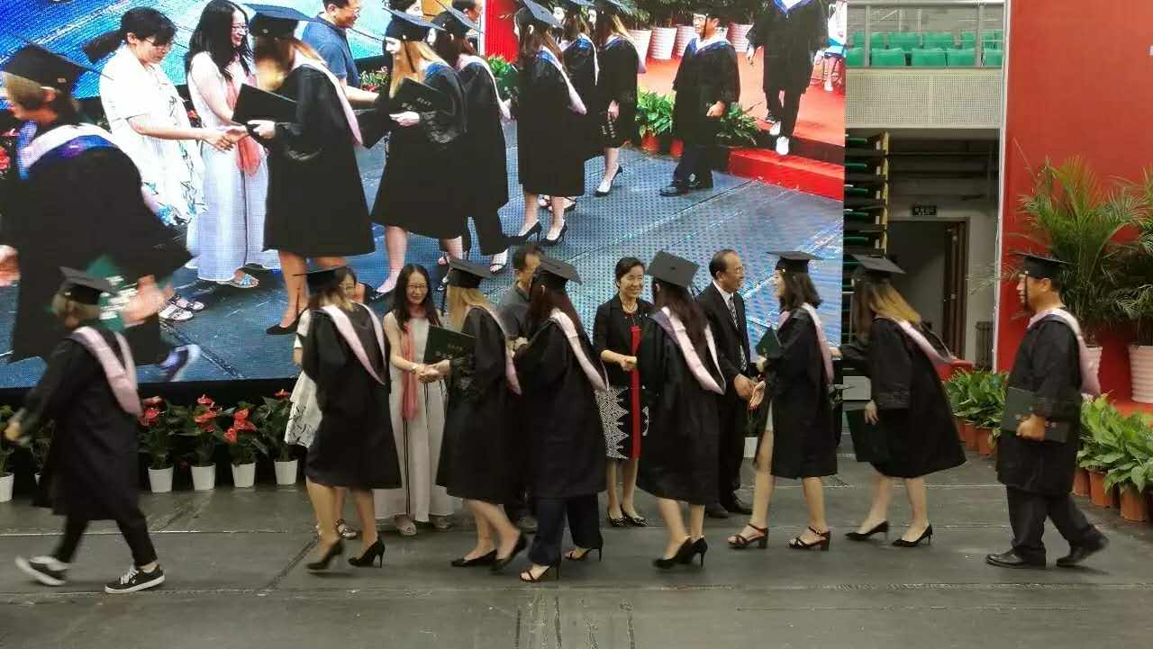 毕业典礼后举行了学位授予仪式。校领导、知名专家、职能部门负责人和我院院长为我院硕士、学士学位获得者颁发学位证书、扶正流苏,并一一合影留念。我院党委书记于宝林老师主持了本学院的学位授予仪式,并为中外毕业生们送上了诚挚的祝福。