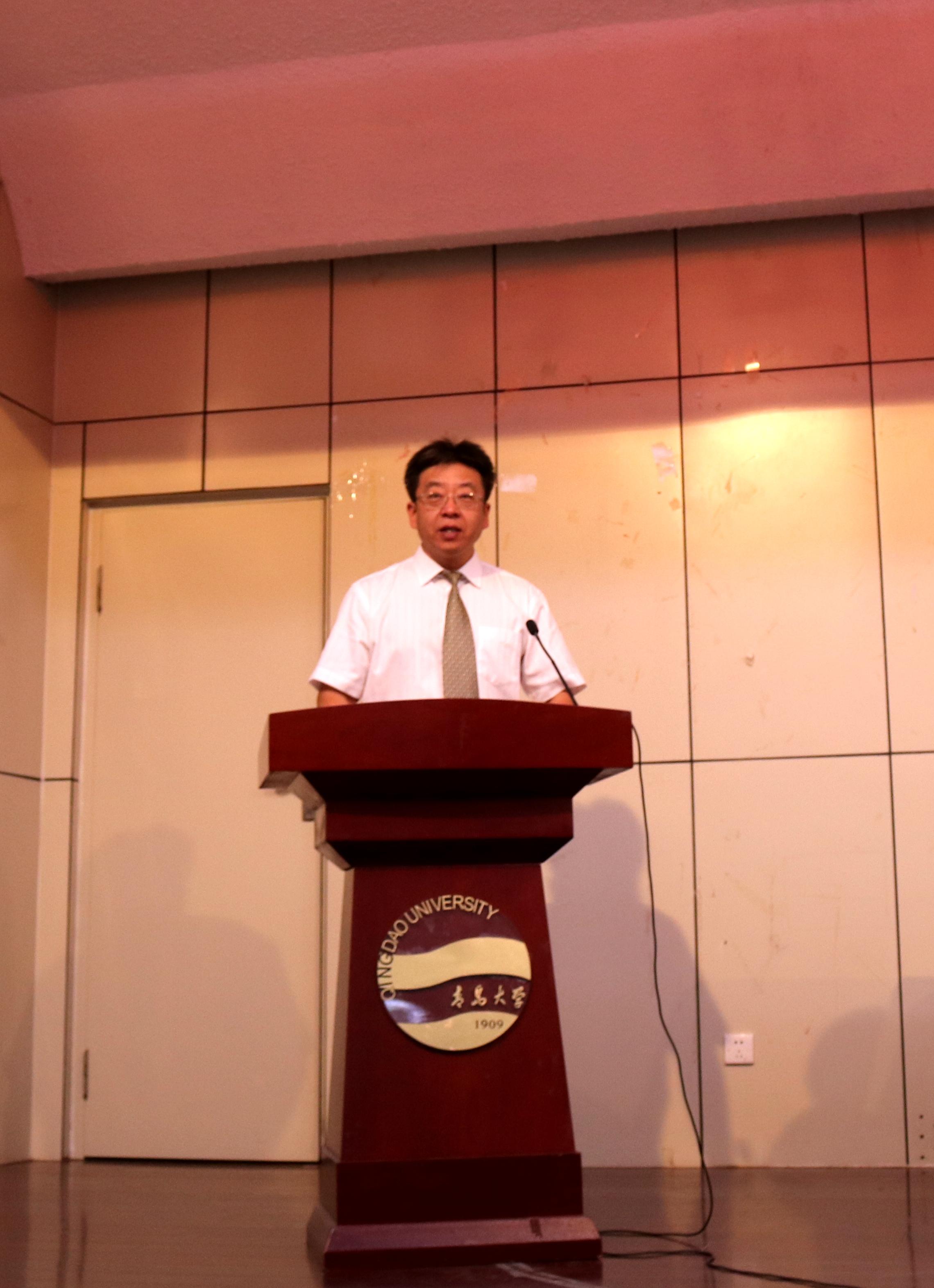 于永明副校长首先代表学校热烈欢迎各国留学生来我校学习,感谢同学们选择青岛大学作为了解中国的一个新起点。在致辞中,他介绍了我校的历史及近年来在国际化建设方面的成果,对留学生同学们提出三点希望:一是多学习,做一名乐学、向上的学生。希望同学们尽快适应中国的学习、生活环境,熟悉学校的校纪校规,合理规划好自己的留学生活,充实地过好每一天。二是多交流,积极吸收中国先进文化。希望同学们好好学习中文,能够真正成为“中国通”。三是多理解,做文化交流的使者。希望同学们在中国生活愉快,理解中国,热爱中国,把中国介绍给自己的朋友和家人,成为一名光荣的文化交流传播者。