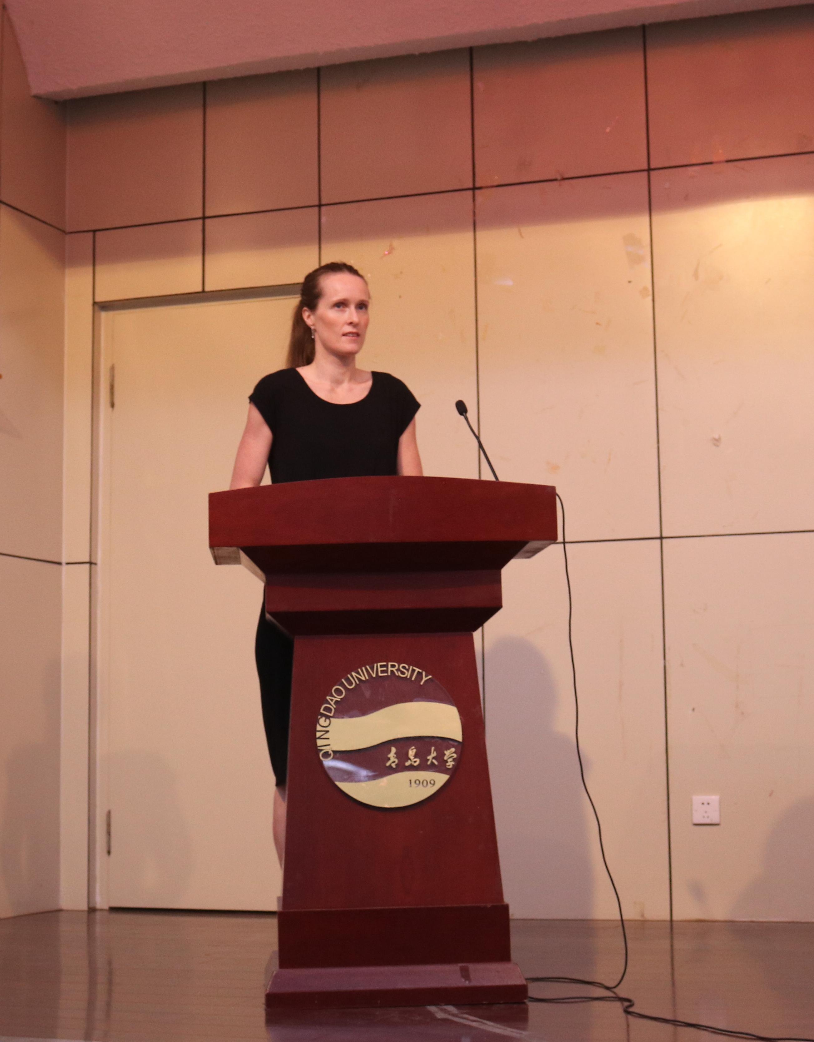 来自美国博士留学生陈安芭代表全体新生发言,来自罗马尼亚的校友邱天美同学与新同学们分享了自己在青岛大学学习生活的亲身体验。
