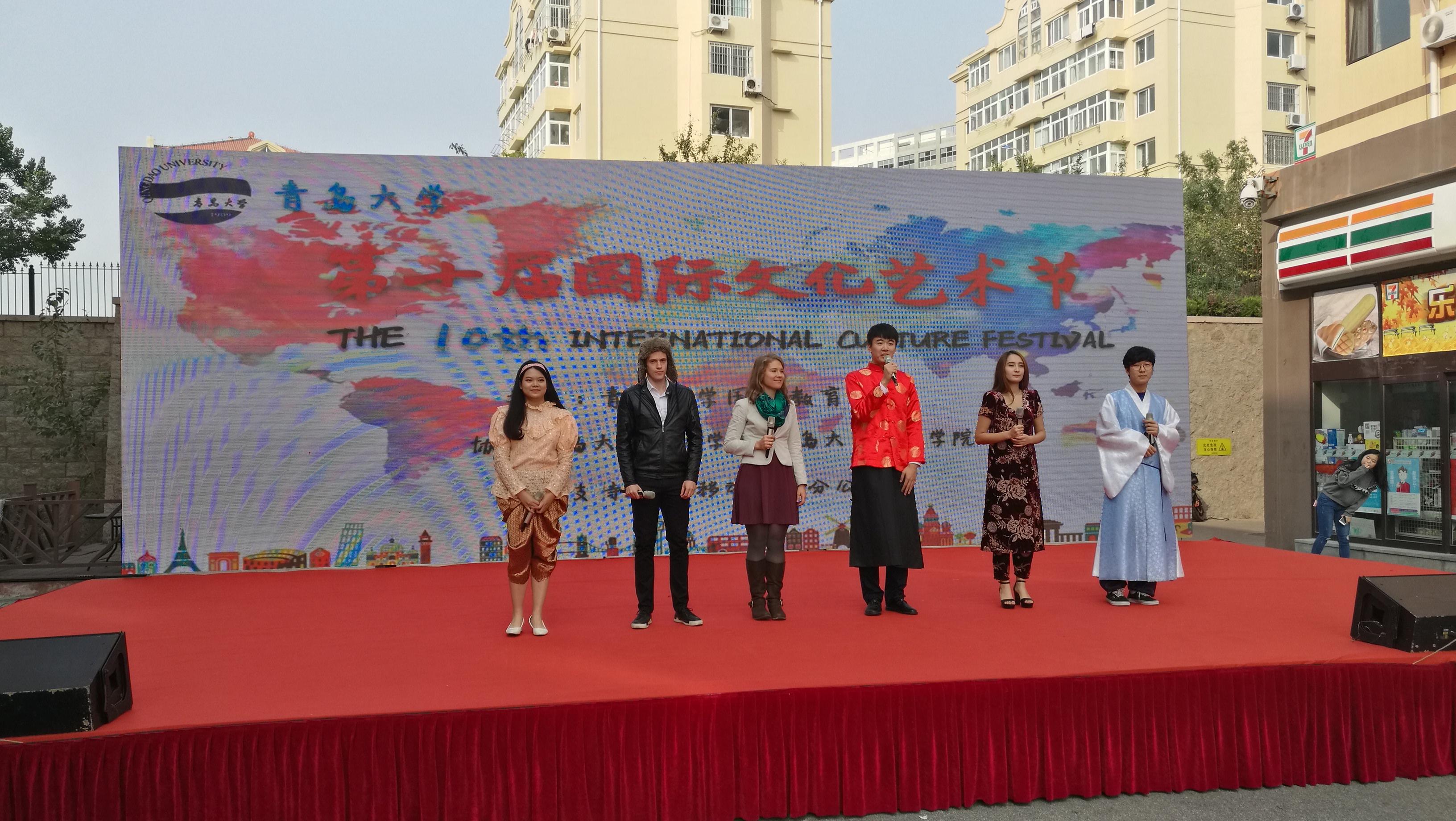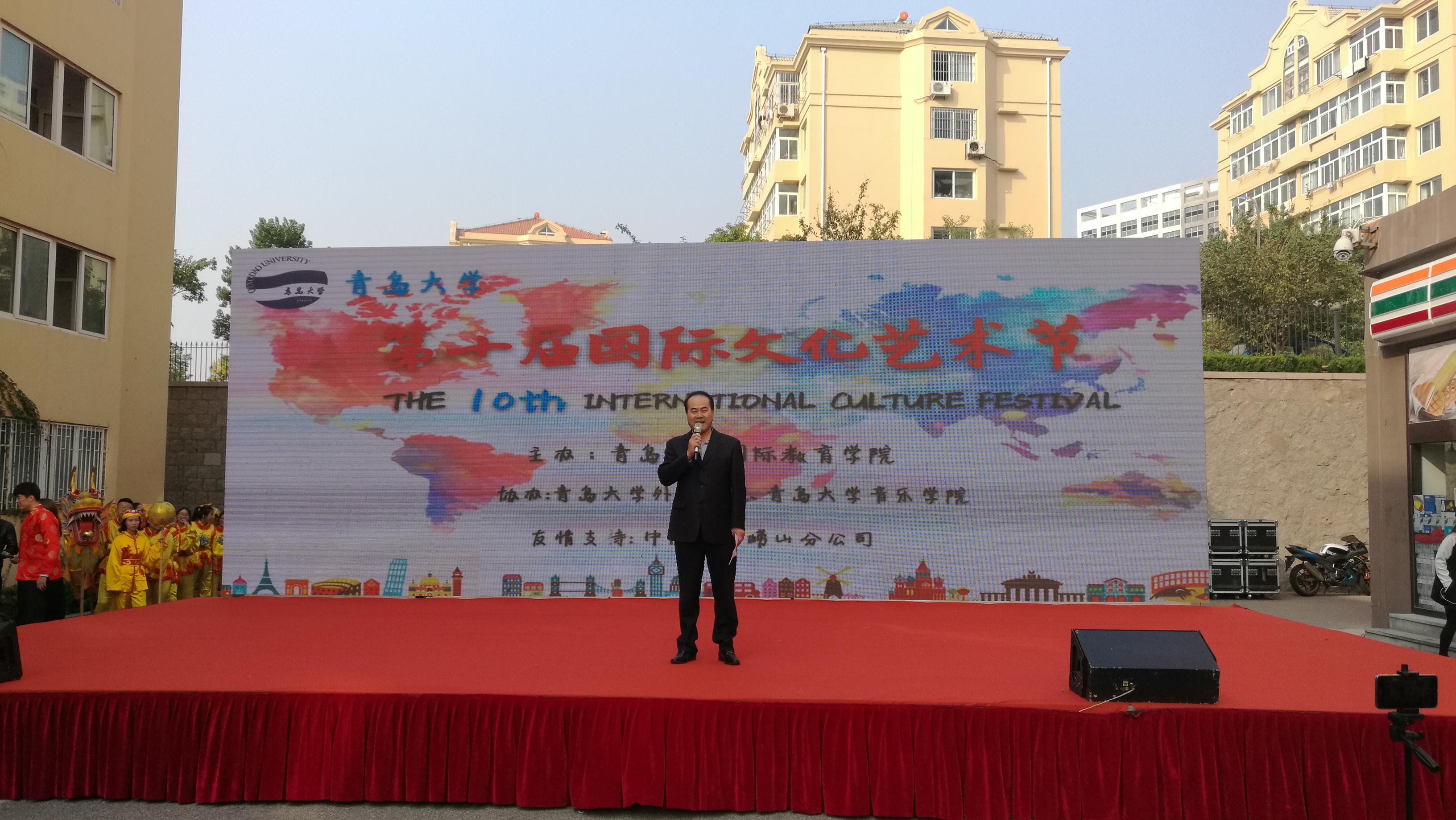 10月20日,由我院主办,青岛大学外语学院、音乐学院协办的青岛大学“第十届国际文化艺术节”在敏行楼前广场举行。校党委常委、副校长于永明出席活动并致开幕词。来自世界40余个国家的留学生及中国学生近千人参加了此次国际文化节。