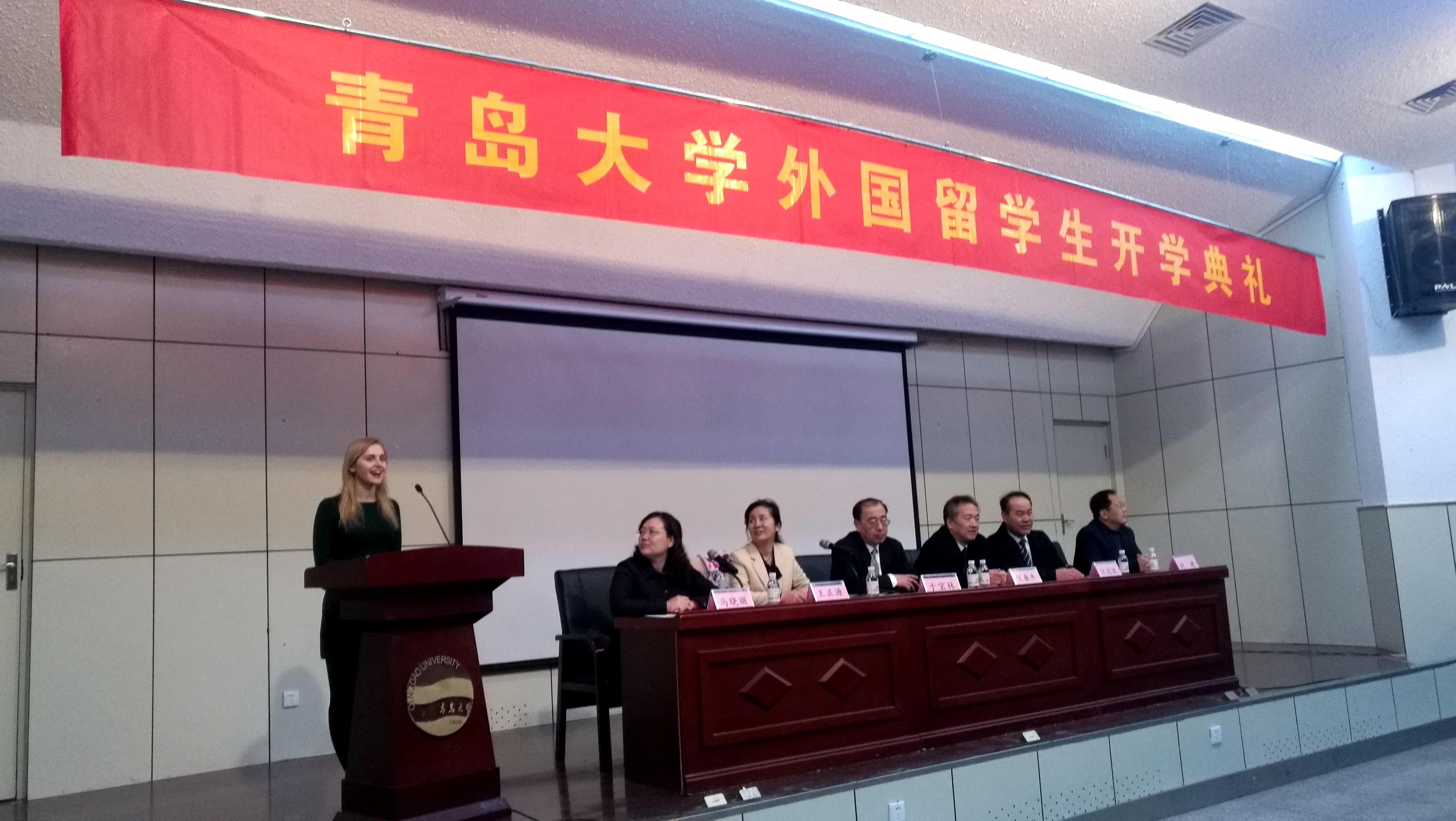 来自乌克兰的山东省政府奖学金生娜丝佳代表留全体学生发言,她表示是缘分让我们相聚青大,将把青岛大学将作为留学生们梦想开始的地方,认真学习汉语和中国传统文化,在这里收获知识、提高能力、实现梦想。