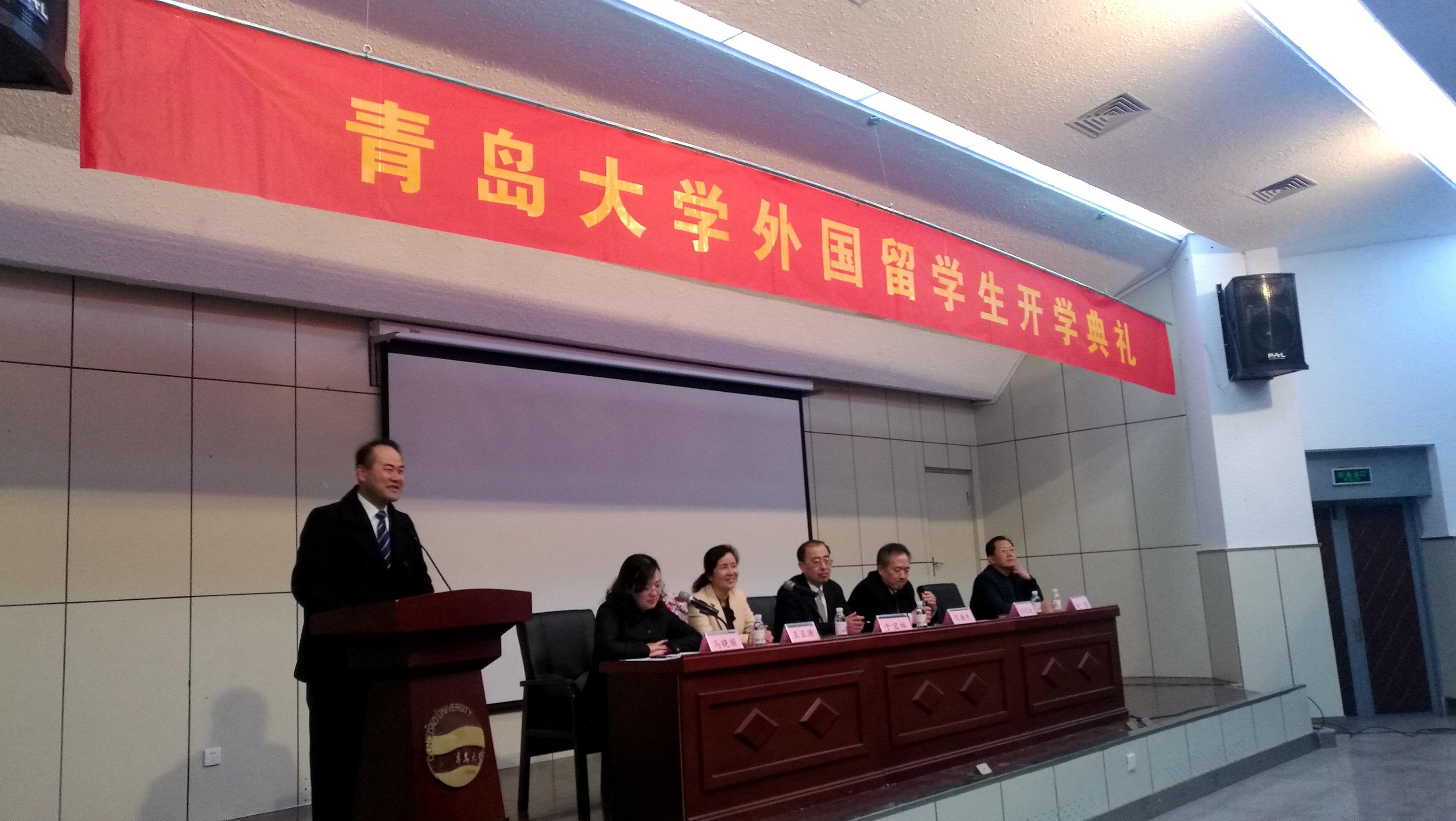 仪垂杰副书记代表学校对各位外国留学生的到来表示热烈欢迎,感谢同学们选择青岛大学作为了解中国的新起点。在致辞中,他介绍了我校概况及近年来的国际化办学工作,他希望同学们能够勤奋学习,真正成为“中国通”,做文化交流的使者,理解中国,热爱青岛和青大,在新的地方和新的起点取得优异的成绩。